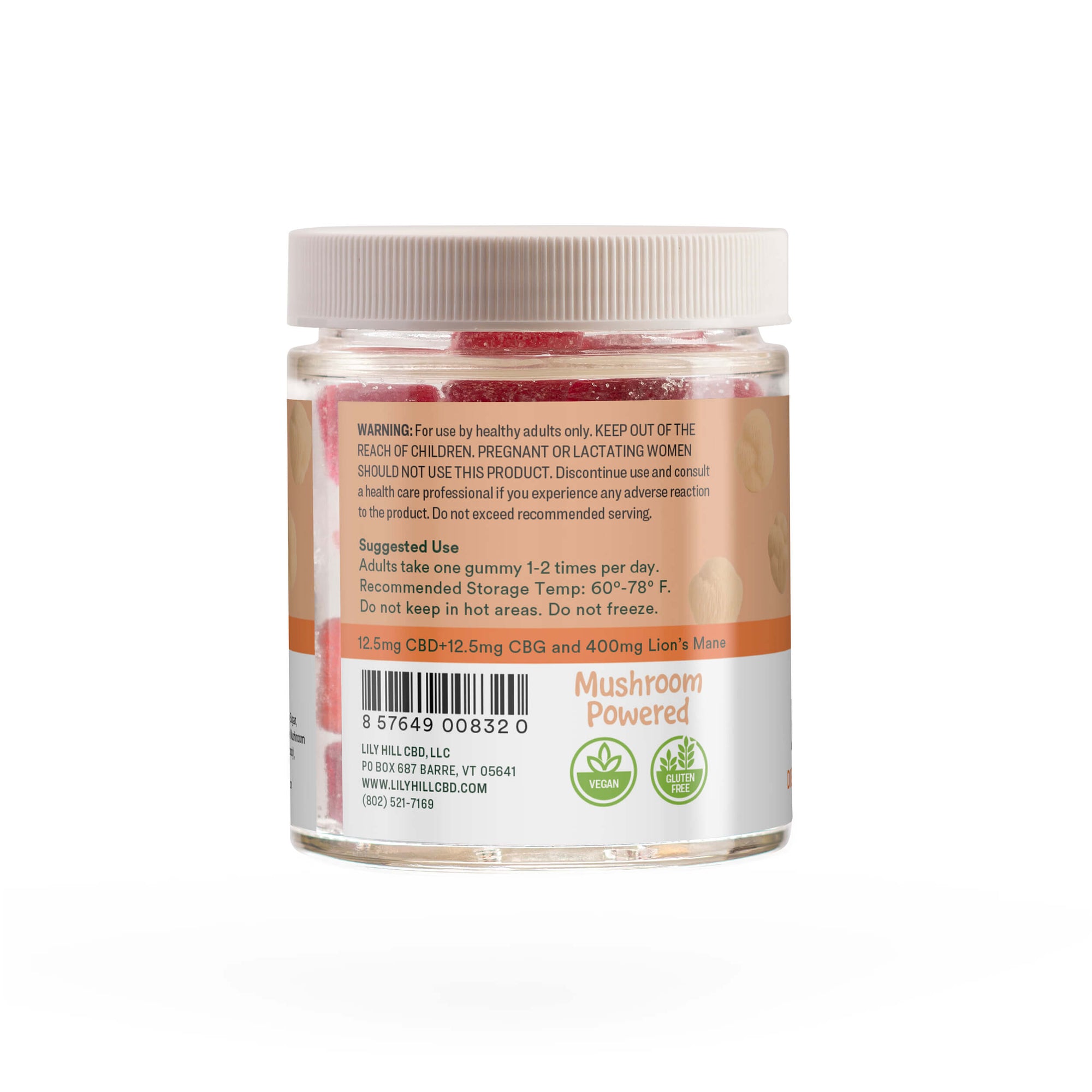 Our gummies harness the power of hemp derived CBD and CBG, both non-psychoactive cannabinoids from certified organic hemp. CBG, known as the "mother of cannabinoids", promotes uplifting focus and neuroprotection, while CBD reduces stress for balanced energy. Paired with 400mg of Lion's Mane mushroom - a nootropic powerhouse known for supporting memory, cognitive function, and nerve health - this trio creates a synergistic blend that keeps your mind sharp and ready for action.